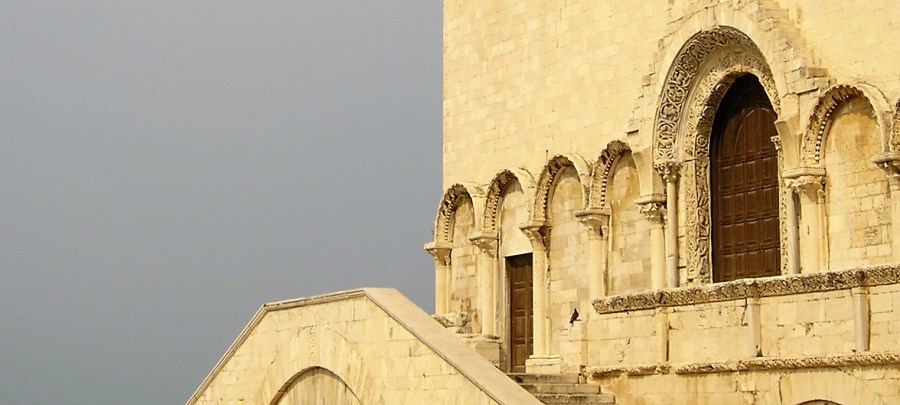 1. Mi risulta che la cattedrale – ripeto quello che scrivo più sopra nei commenti – sia sorta su una precedente chiesa dedicata a Maria, e sia formalmente intitolata a Santa Maria Assunta. Il legame con san Nicola Pellegrino, morto a Trani sul finire dell’XI secolo è ovviamente fortissimo: la nuova chiesa è stata immaginata come il reliquiario del Santo e il luogo primo del suo culto.