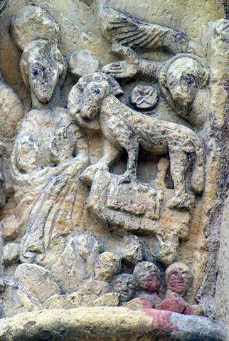 Basta per dire che certi capitelli, e questo in particolare, sanno parlare come un libro stampato? Qui a Fleury – davanti a questo e agli altri capitelli che nel poderoso portico dell’abbazia di Saint-Benoît ri-raccontano l’Apocalisse – non ci possono essere dubbi. E questo pezzo splendido, che poteva apparire come una confusa rappresentazione di uomini ad animali, o una caccia strana, culminante in un sacrificio, si dimostra in realtà come il frutto di una narrazione precisa e devota, come una nuova esperienza profetica. E’ quasi la proclamazione, dal leggìo di marmo, del testo giovanneo, e più ancora è un nuovo annuncio di quella promessa antica che, così com’è annunciata dai pulpiti di tutte le chiese, deve giungere ai fedeli anche attraverso il lavoro e l’arte dello scultore.