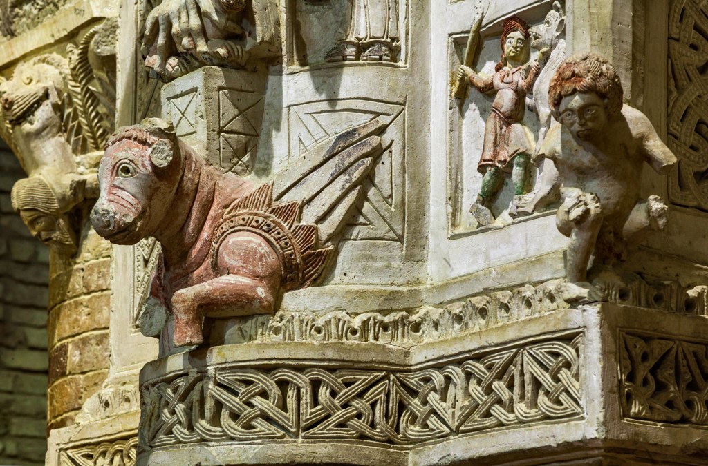Quello che ingoia il “folletto” non è un leone ma un serpente, come si può vedere nell’altro ambone di Nicodemo nella Chiesa di S.Stefano a Cugnoli, dove il maestro pone, nella stessa posizione, lo stesso capitello! Un altro capolavoro del grande Nicodemo! 😍