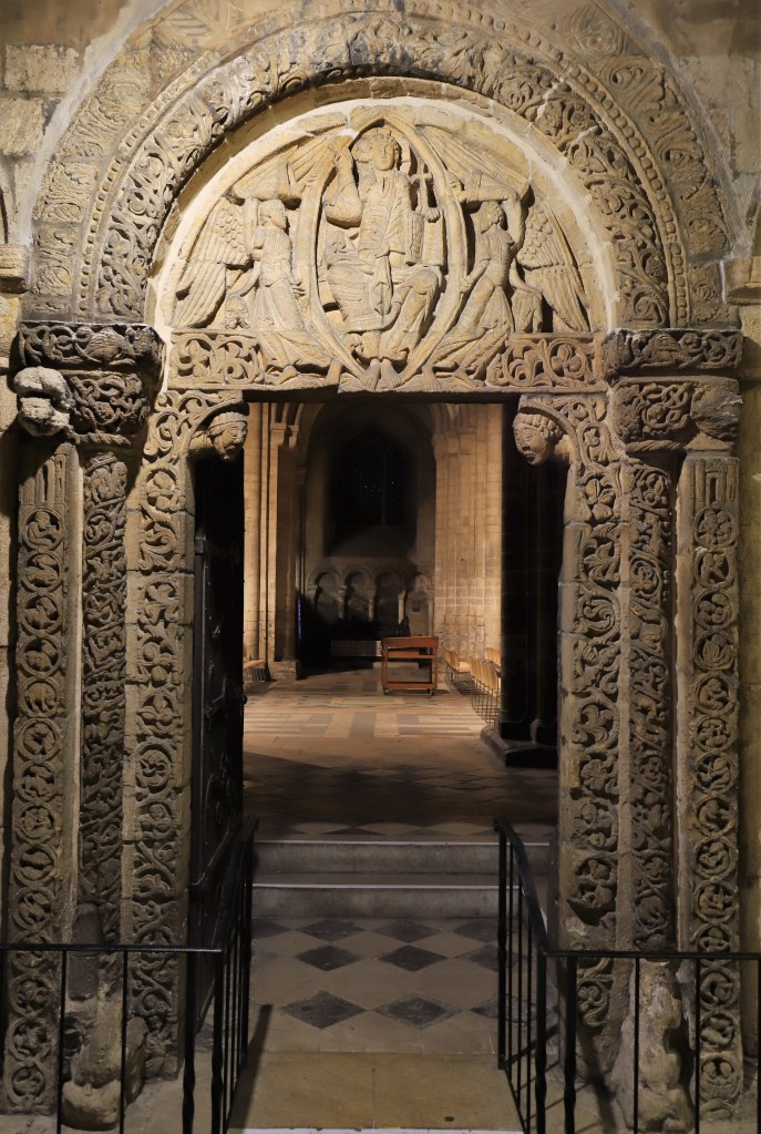 Stupendo racconto per uno stupendo portale romanico, ammalianti l’uno e l’altro, per i preziosi rimandi iconografici al passato. Ely è un capolavoro dell’architettura normanna e questo piccolo portale ne esalta la bellezza complessiva. La mandorla costretta ad invadere l’architrave per dispiegarsi sufficientemente ampia per la tipica narrazione del Cristo giudicante è una scelta artistica originale e sorprendente assieme.