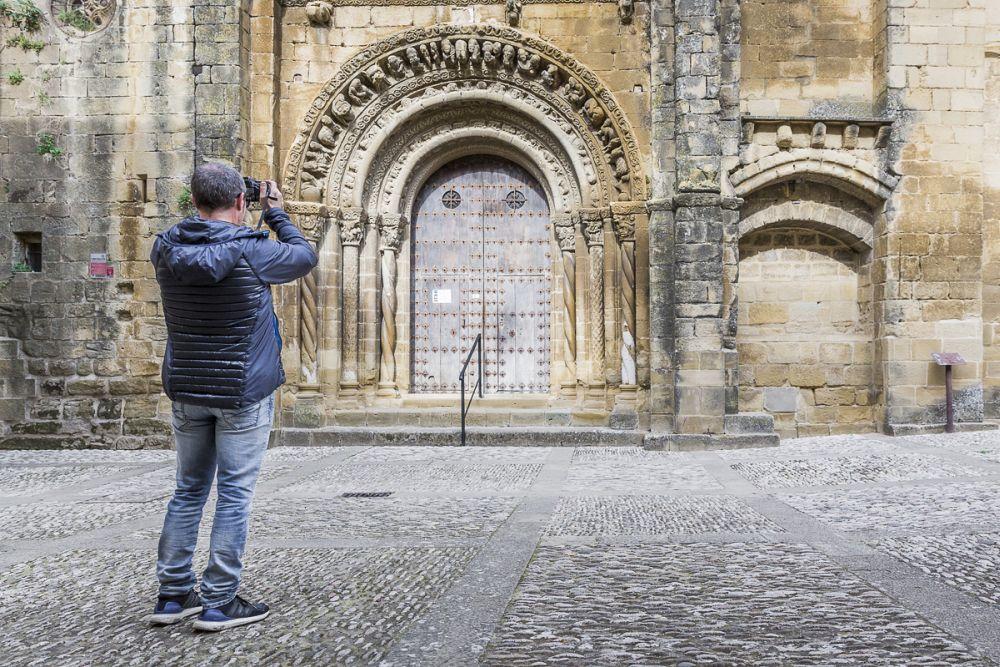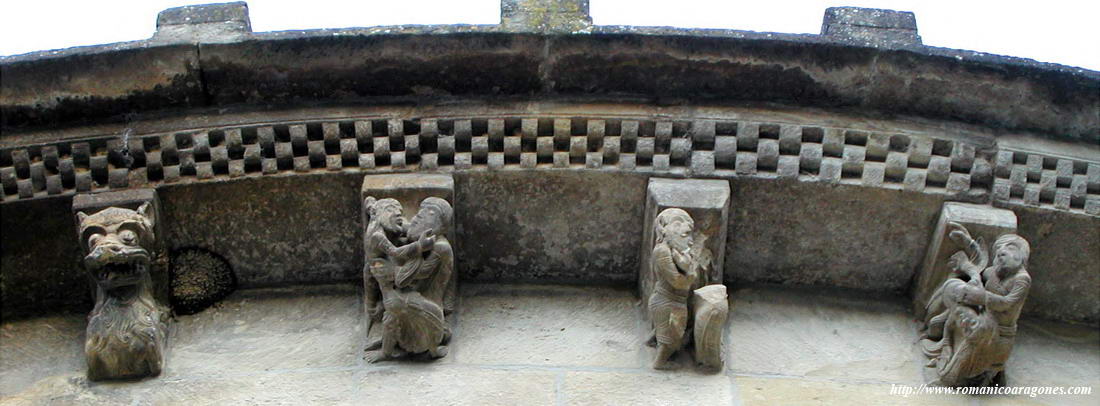 La chiesa di Santa Maria propone anche al suo interno alcuni capitelli interessanti. Ma i rilievi per cui è nota si concentrano nel rigoglioso portale e poi nell’abside: agli archivolti e ai capitelli che ornano l’accesso meridionale, così, rispondono i “modiglioni”, le mensole poste a reggere, in alto, all’esterno, il giro della copertura (in spagnolo si chiamano canecillos), scolpite anch’esse appunto con figure di svago e di divertissement.