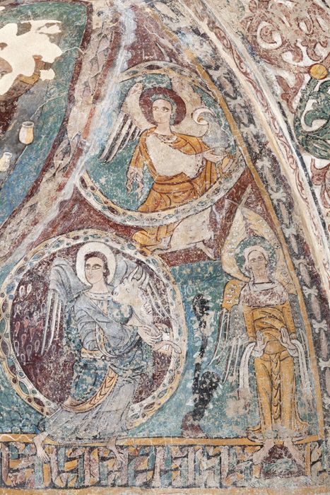 Anche se gli affreschi “nuovi” sono riferibili, quindi, all’ultima fase del romanico, resta il fatto che non sono di molti decenni posteriori rispetto a quelli sottostanti. Le pitture precedenti – a quel che racconta il volto del Salvatore, che è il solo frammento rimastoci – risalgono infatti probabilmente allo stesso XII secolo. Non saremo forse mai in grado di determinare le ragioni di una così repentina sovrapposizione, che può anche essere dovuta a difficoltà incontrate dal primo frescante e dal suo lavoro; ma per una volta, gli appassionati dell’arte romanica vedono un affresco romanico coperto da un’altra opera dello stesso periodo, e non da sovrapposizioni di altro stile e di altri secoli, come tanto spesso è accaduto in giro per l’Europa cristiana.