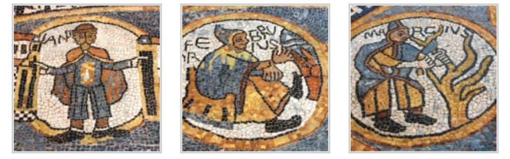 Lo stato di conservazione di questo pavimento è stupefacente. Colori vivi, disegni chiari e si può così leggere tutto con facilità. Un vantaggio rispetto ad altri cicli che sono più rovinati, come ad esempio quello di Piacenza.