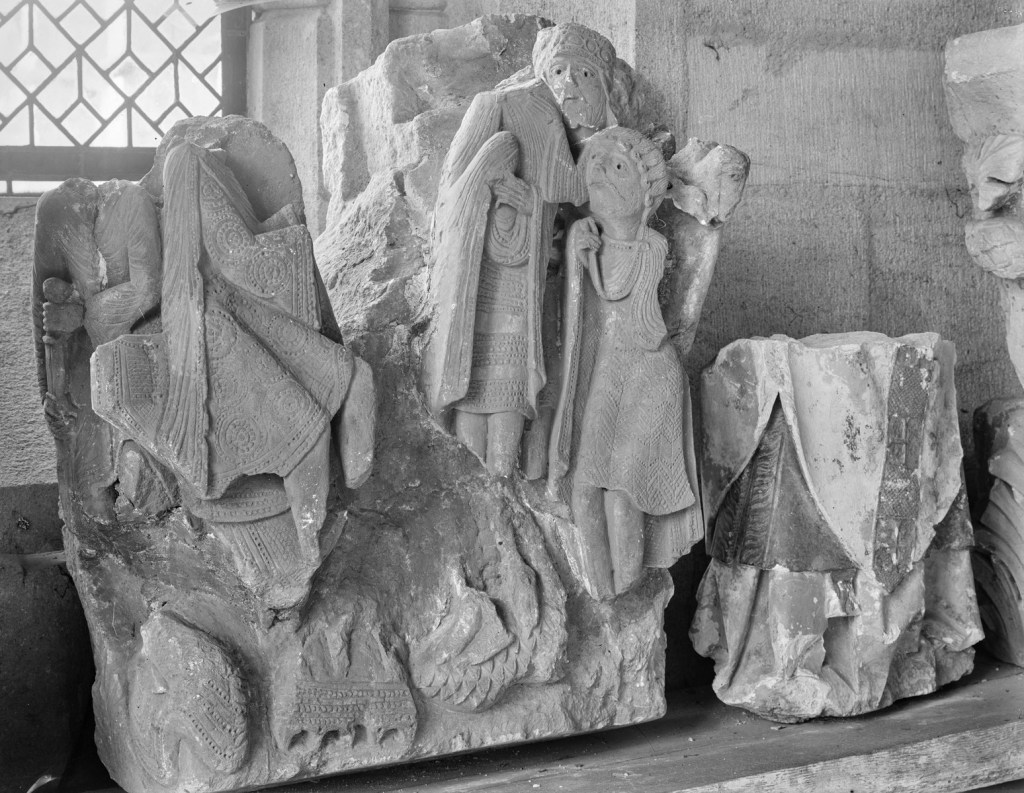 La chiesa di Saint-Lazare domina con la sua mole e la sua guglia la storica città di Autun, in Borgogna. I quattro rilievi del “ciclo dell’infanzia” sono conservati nella Sala Capitolare, dove sono esposti una ventina di capitelli, quattordici dei quali sono istoriati, provenienti dal coro e dalla navata della cattedrale; giù, nella chiesa, sono stati sostituiti da copie. In questo piccolo e interessantissimo museo lapidario – vi si accede dalla cappella laterale destra a fianco del coro – i capitelli possono essere ammirati da vicino, ed offrono l’occasione di osservare nei dettagli il lavoro di Gislebertus, lo scultore che, attivo ad Autun nella prima metà del XII secolo, ha eseguito tutti i capitelli della chiesa e il mirabile portale della stessa Saint-Lazare, oltre a quel pezzo spettacolare che è la Eva conservata nel vicino Musée Rolin.