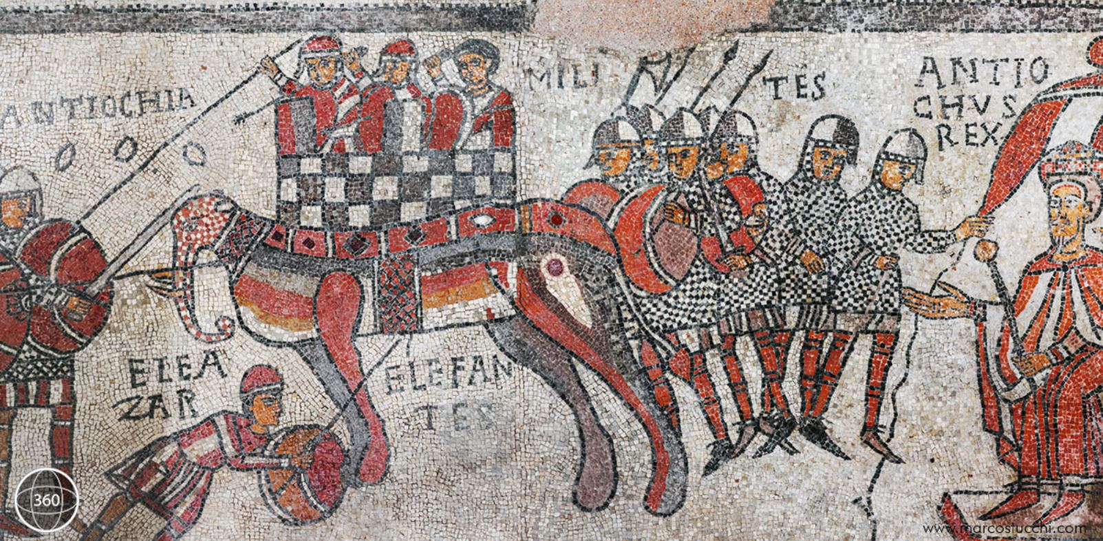 Eleazar uccide l’elefante dei Siriani. A destra, osserva la battaglia il re Antioco (foto: marcostucchi.com)