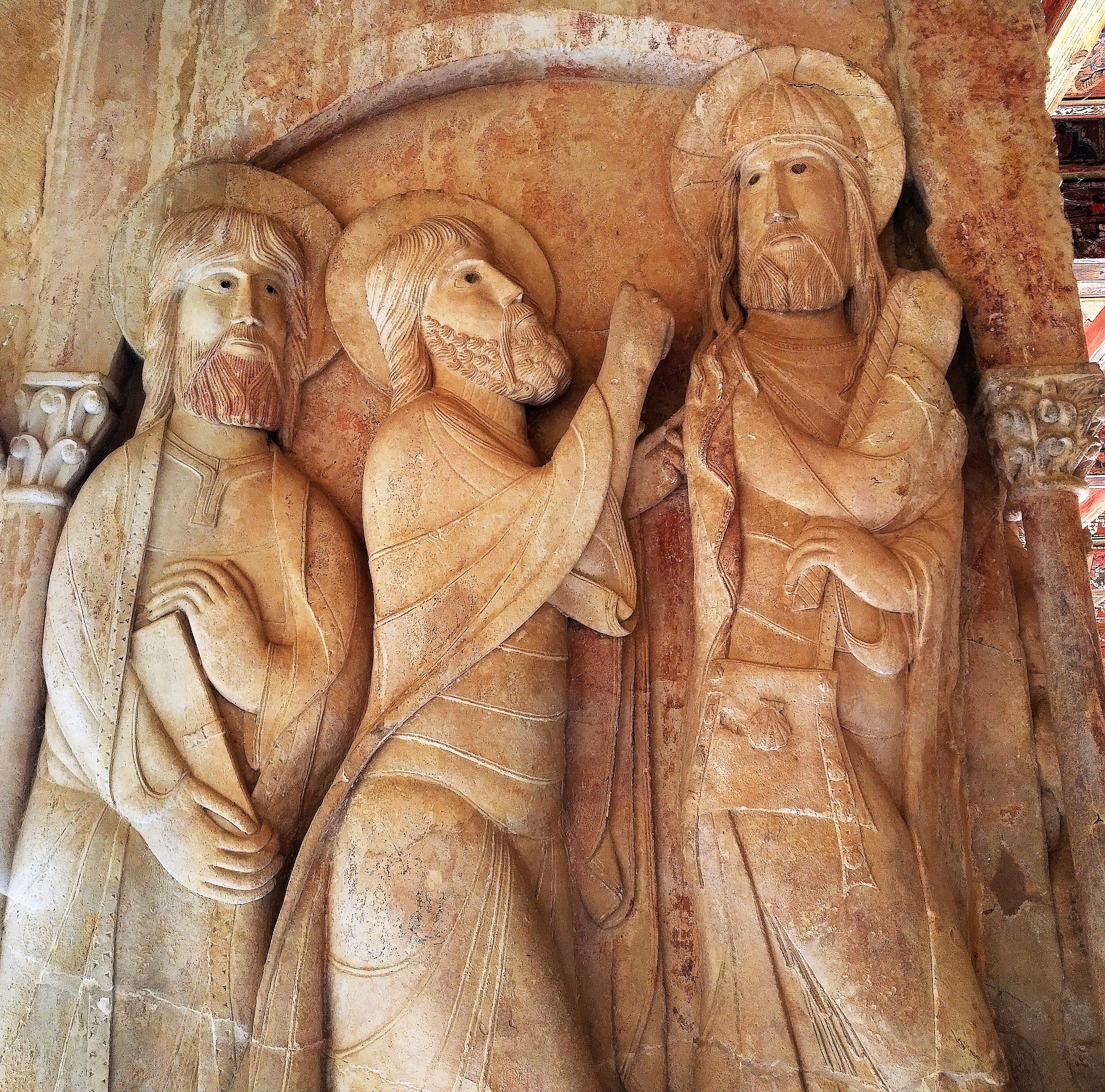 Gesù è vivo come non mai nel medioevo, e la sua vicenda terrena è una collana di incontri, da ciascuno dei quali scaturisce un flusso di sentimenti. Le pagine del Vangelo diventano il “Libro della vita”: se l’Antico Testamento, infatti, costituisce per l’arte romanica quasi una sorta di patrimonio mitologico cristiano, un mondo delle origini da cui trarre gli insegnamenti fondanti del vivere, i Vangeli diventano invece, per questi stessi artisti, il libro delle emozioni profonde. E nei capitelli, nei portali e negli affreschi romanici, così, si racconta come il Figlio dell’Uomo ha saputo calarsi nelle vicende quotidiane, negli incontri, nelle sfide, nelle miserie e nei miracoli, nella passione e nella morte in croce; e ai sui sentimenti rispondono – quasi altrettanto importanti per gli scultori e i frescanti romanici – i sentimenti di coloro che ebbero la fortuna di camminare con il Cristo, di vederlo agire e predicare, o anche solo di incrociarne lo sguardo per un breve momento.