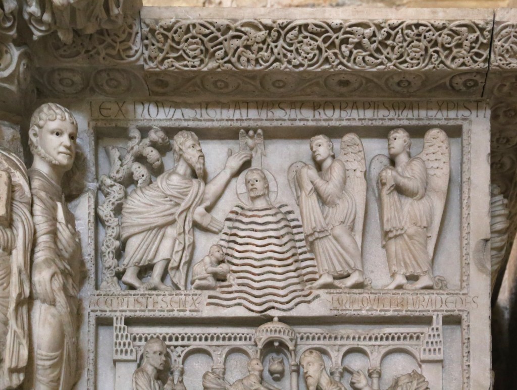 Il pergamo smembrato: la “cantoria” di sinistra (foto: Sailko, elab.)