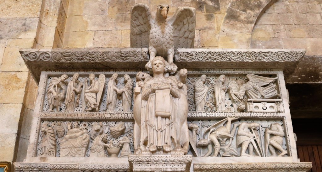 Cacciato di casa dal prorompente diffondersi di un gusto nuovo e sfavillante, costretto a farsi esule e a trasferirsi in una terra non sua, e poi di nuovo messo in discussione da un ulteriore mutare della sensibilità artistica, il pergamo di Guglielmo porta il peso di tutta la sua sfortunata vicenda, e sembra non avere neppure la forza di chiedere maggior attenzione da parte degli appassionati e degli studiosi. Ma se potesse parlare, pretenderebbe di essere ricondotto a Pisa, nella sua cattedrale, nella sua città, e di tornare a vegliare sulla navata e sugli uomini e sulle donne che sette secoli fa decisero di accantonarlo, privandosi così di un’opera splendida, e lo abbandonarono al suo destino.