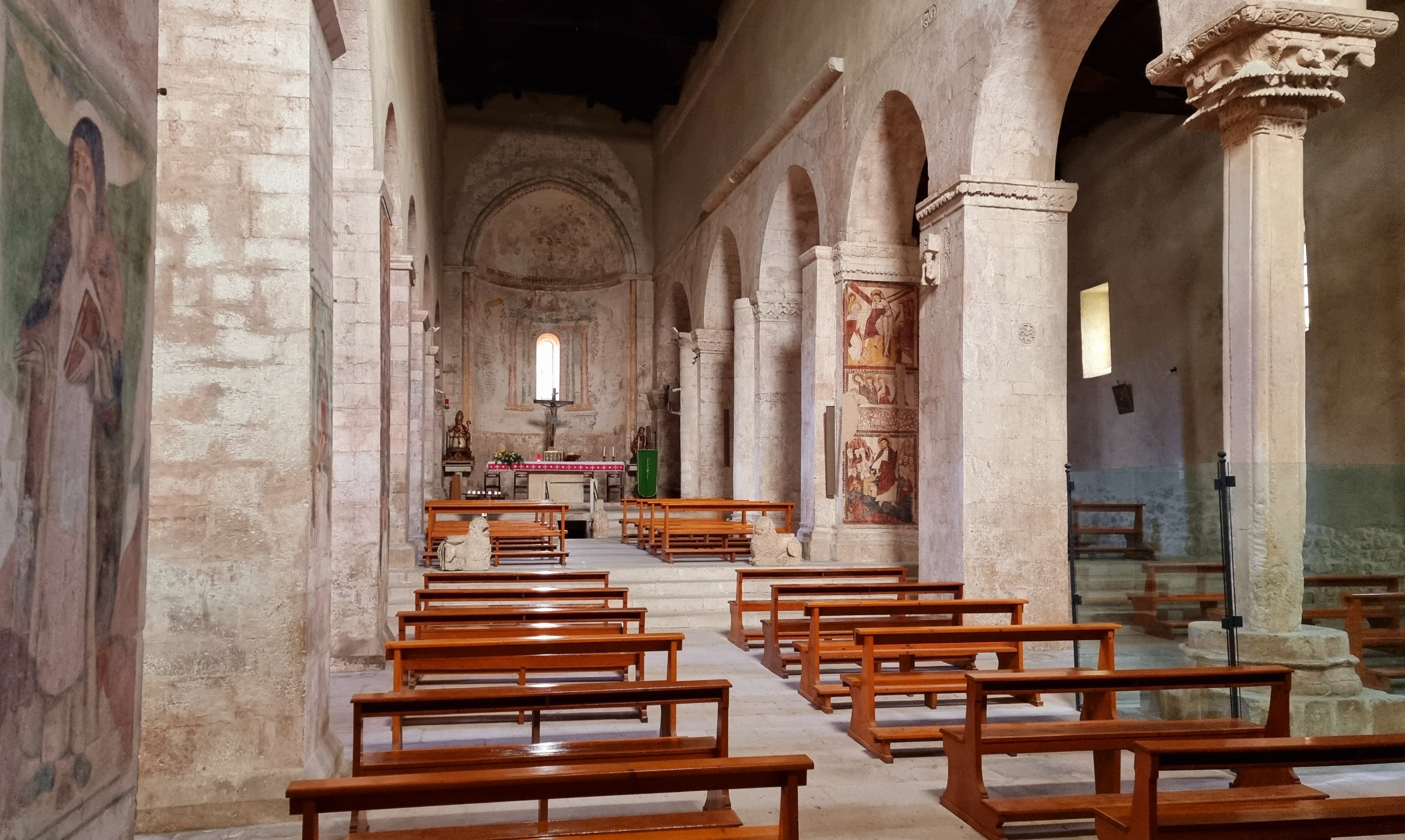 E’ decisamente affascinante la chiesa ed il luogo. Defilata dal paese in luogo appartato non ti aspetti una chiesa di questo interesse sia per la facciata ricchissima che per l’interno di bella armonia a parte la colonna che sembra volere dare un tocco di imperfezione e quindi di interesse. Belli anche gli affreschi. In una giornata assolata si gode di una magnifica ombra sul sagrato che contrasta col riflesso ocra della facciata e con ‘oscurità dell’interno. Dobbiamo ringraziare la regione Abruzzo per avere fatto in modo che tutte le chiese romaniche siano facilmente accessibili.