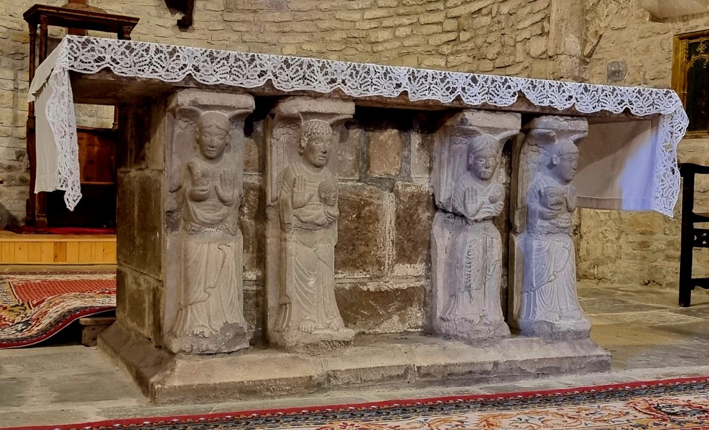 Una imperdibile tappa del mio splendido viaggio dell’anno scorso attraverso i Pirenei tra Aragona e Navarra è stata Roda de Isàbena con la sua affascinante cattedrale romanica dove spicca l’antica cripta e l’adiacente chiostro. Ho dovuto, come spesso succede in Spagna, attendere il consueto orario di apertura (le 16,00) ed ho quindi potuto ammirarla quasi in solitaria, ammirare il sarcofago sapientemente scolpito nella cripta e quindi l’altare nel superiore presbiterio rialzato, che così bene ci mostri.