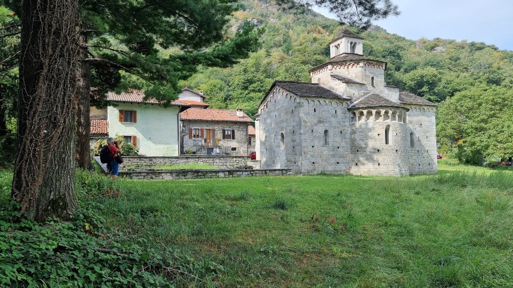 Una delle rarissime chiese romaniche della zona facilmente visitabili. Ma il campaniletto del tiburio non è posteriore, e se lo fosse lo sarebbe di poco: è comunque in disuso per vari motivi di pigrizia (non c’è la corda, non ci saranno le braccia e le funzioni son comunque poche), ma è stato ripristinato nella sua funzione campanaria con i restauri di fine anni 70. Era del tutto murato, prima, anche perché un campaniletto a vela era stato costruito in facciata nel 1786: con i lavori, il campanile a vela è stato demolito, son state riaperte le finestre della lanterne ed è stata ricollocata una campana. Il tutto non dovrebbe stupire: piccole celle campanarie a coronamento del tiburio si trovano in altri battisteri, da Biella a Settimo Vittone passando per Lenno.
