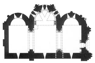 Il Santiago visto da ovest e, sotto, uno scorcio dell’interno