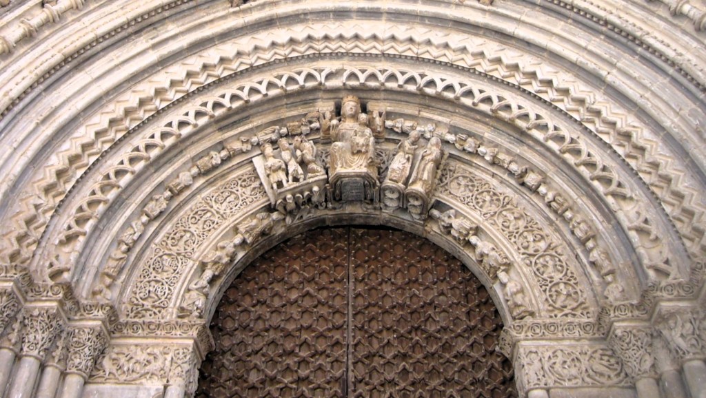 Conviene allora fermarsi a Agramunt, in Catalogna: perché qui, sulla facciata della chiesa parrocchiale di Santa Maria possiamo ammirare, e possiamo osservare con cura, un portale che si direbbe romanico, eppure è stato scolpito addirittura intorno al 1250, ben al di là della linea ideale che abbiamo appena provato a tracciare, e che – nonostante la fragilità di certe schematizzazioni – altrove in Europa appare universalmente rispettata come un confine non valicabile.