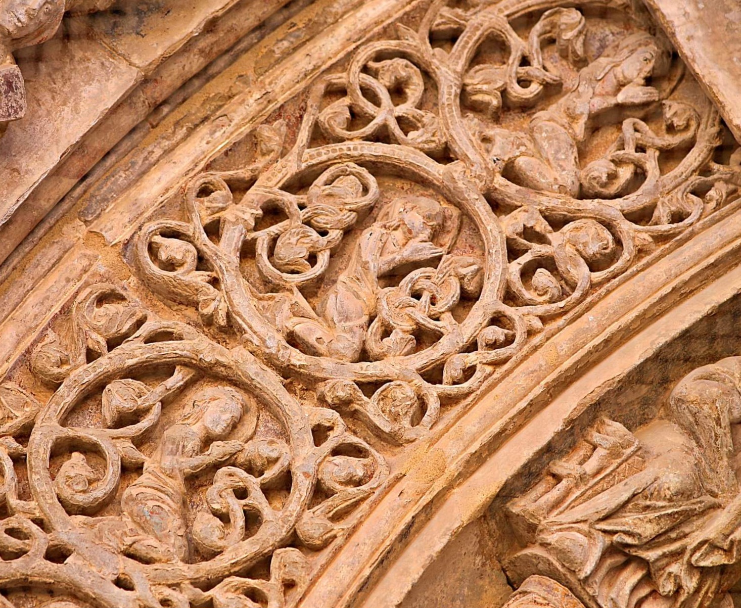 Conviene allora fermarsi a Agramunt, in Catalogna: perché qui, sulla facciata della chiesa parrocchiale di Santa Maria possiamo ammirare, e possiamo osservare con cura, un portale che si direbbe romanico, eppure è stato scolpito addirittura intorno al 1250, ben al di là della linea ideale che abbiamo appena provato a tracciare, e che – nonostante la fragilità di certe schematizzazioni – altrove in Europa appare universalmente rispettata come un confine non valicabile.