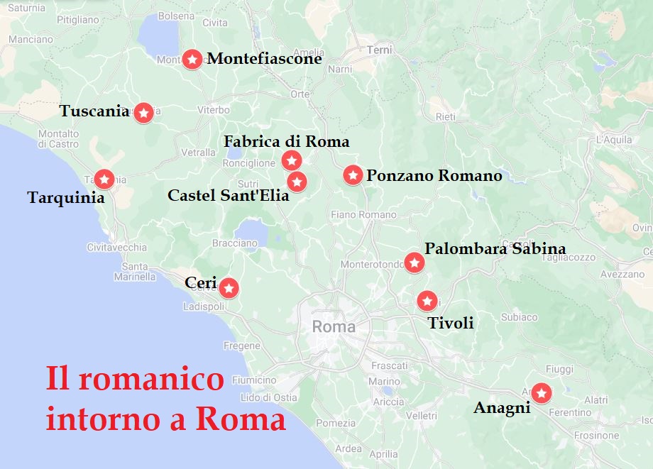 E’ interessante vedere lo sviluppo del romanico nel Lazio intorno a Roma, che mostra alcune pregevolissime perle architettoniche, tra cui Tuscania spicca per ricchezza di edifici. Alcune, meravigliose, come Castel Sant’Elia ancora mi mancano e spero di vederle al più presto, magari la prossima Pasqua.