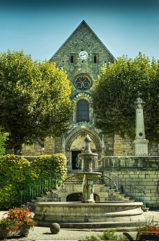 La cappella di Saint-Chef e, sotto, la facciata dell’abbaziale