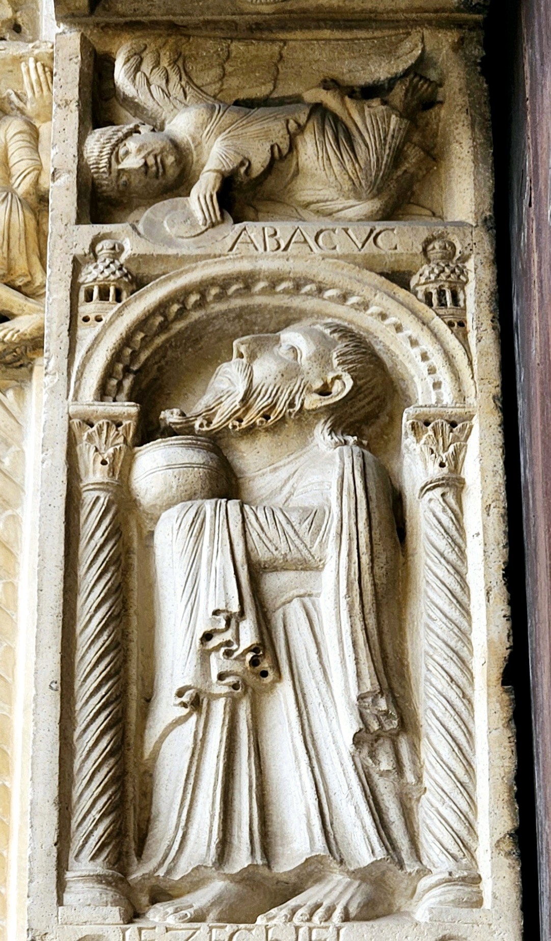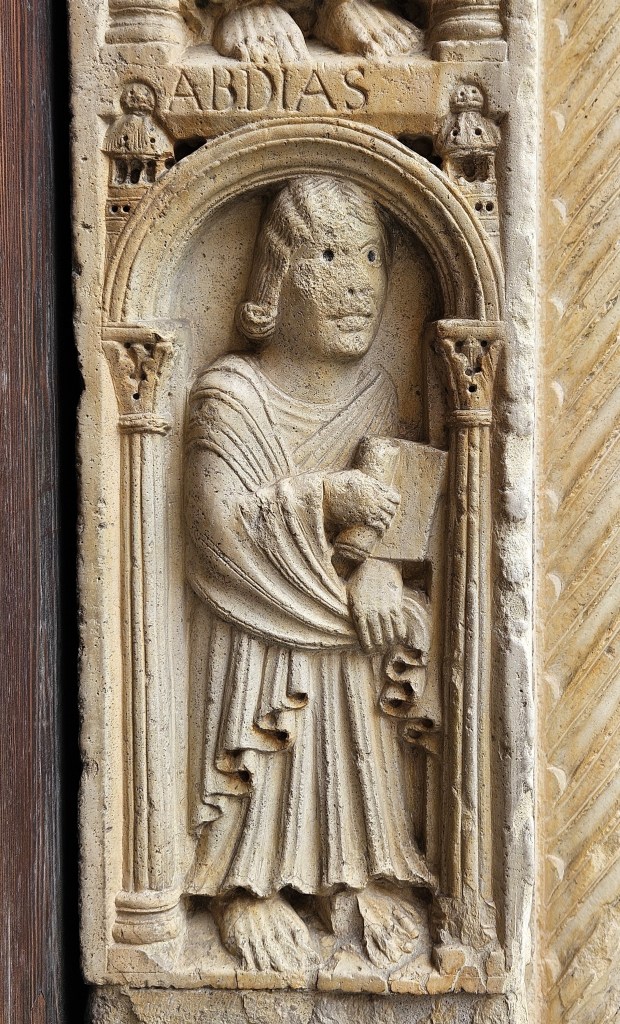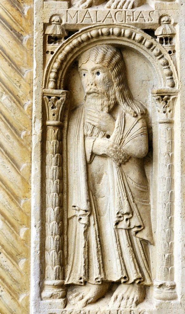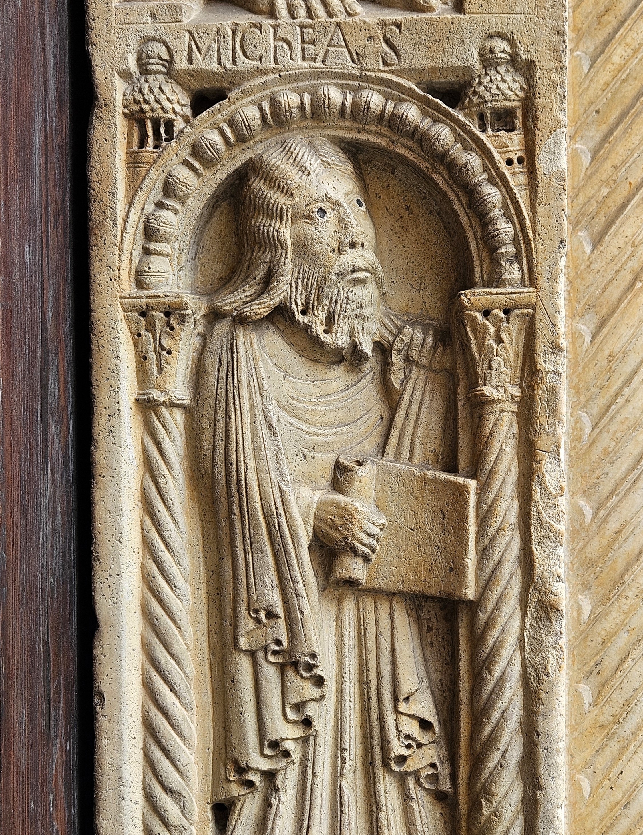 Michea e Malachia, due profeti minori posti l’uno di fronte all’altro nella quinta coppia, sono, secondo Feltri, i perfetti annunciatori della salvezza portata dal Figlio dell’Uomo: hanno proposto numerosi spunti a testimonianza che davvero Gesù era quel Messia che le Scritture ebraiche ripetutamente e assiduamente avevano annunciato. Abdia e Sofonia, infine, che nelle due serie dei montanti del portale stanno… al piano terra, possono essere definiti i profeti del Giudizio: i testi a loro attribuiti “contengono entrambi un riferimento all’imminente Giudizio divino, chiamato in entrambi i testi «giorno del Signore»”.