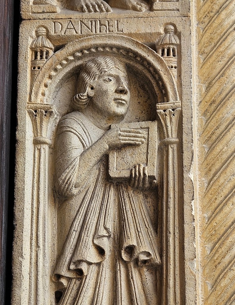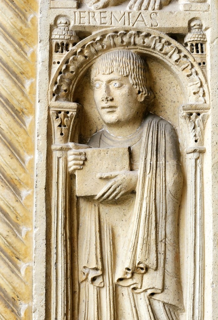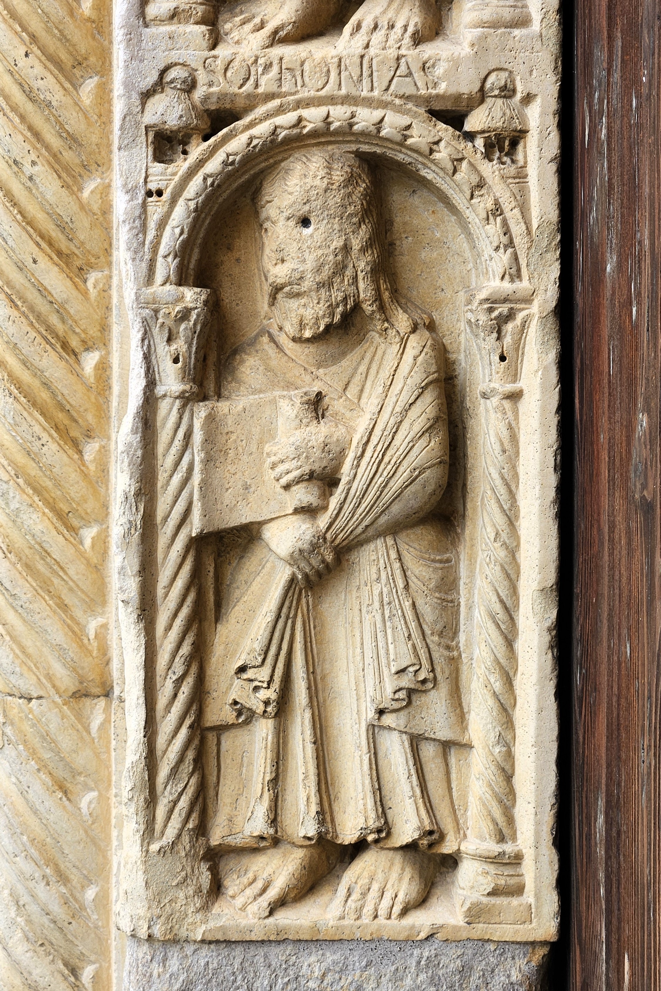 Per incontrare i profeti della tradizione ebraica – quasi tutti, ma non tutti – torniamo a Modena. Per guardarli in viso, ci affidiamo a Wiligelmo, che ne ha ritratti dodici, col suo scalpello, nel portale centrale del Duomo, nelle facce interne dei due pilastri che sostengono l’architrave. In questa “Porta Papale”, tutta la decorazione dei montanti, dell’architrave e dell’archivolto è, secondo gli studiosi, opera del maestro; e i dodici profeti – vivaci, differenti l’uno dall’altro nella posa e nei lineamenti, così lontani da certe figure appannate di artisti romanici minori o del tempo gotico – confermano che qui operò un artista di primissimo livello.