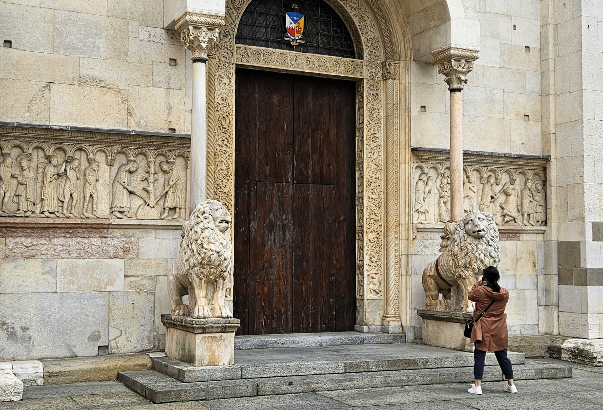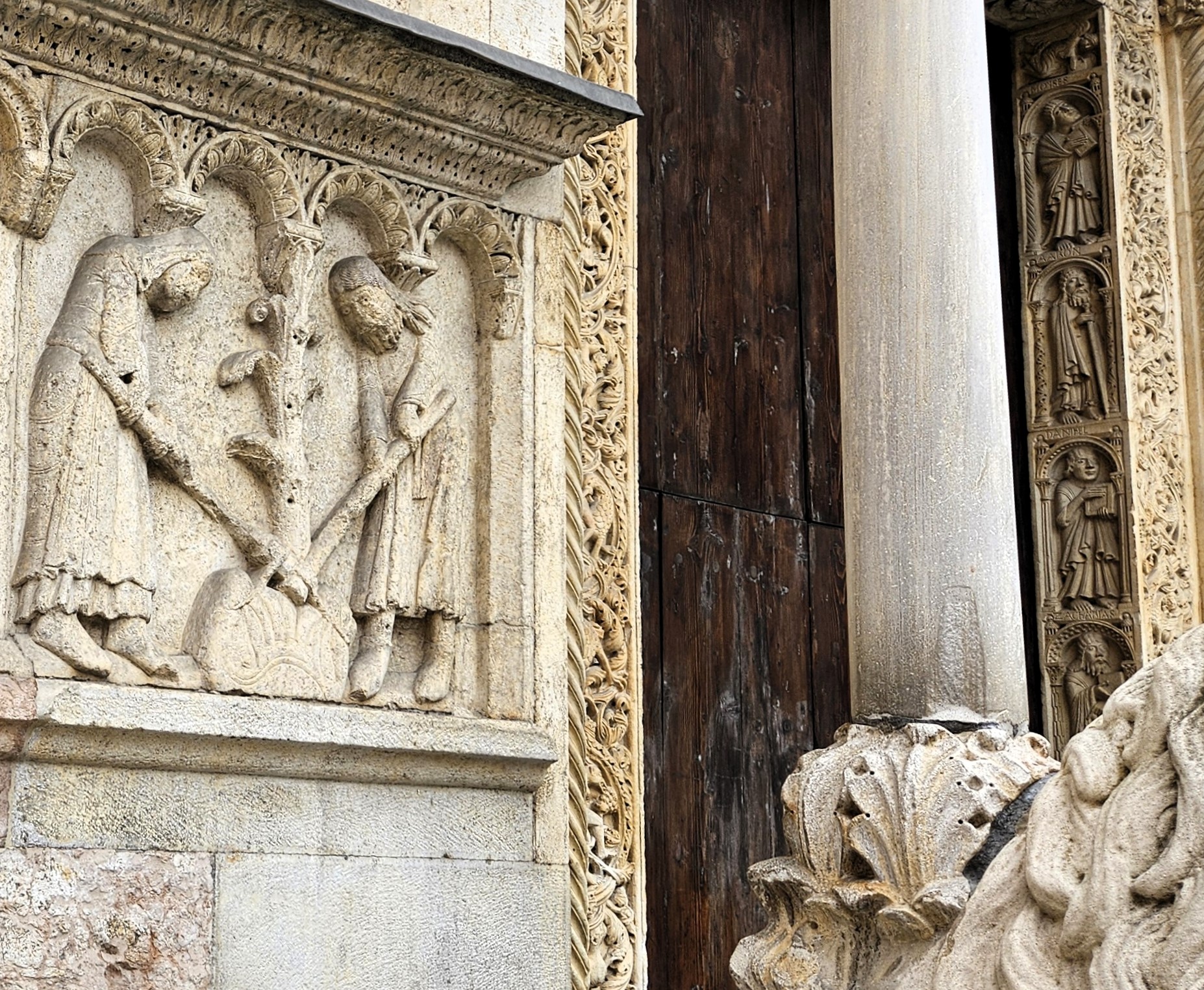 La Porta Papale e, sul lato interno degli stipiti, i profeti di Wiligelmo