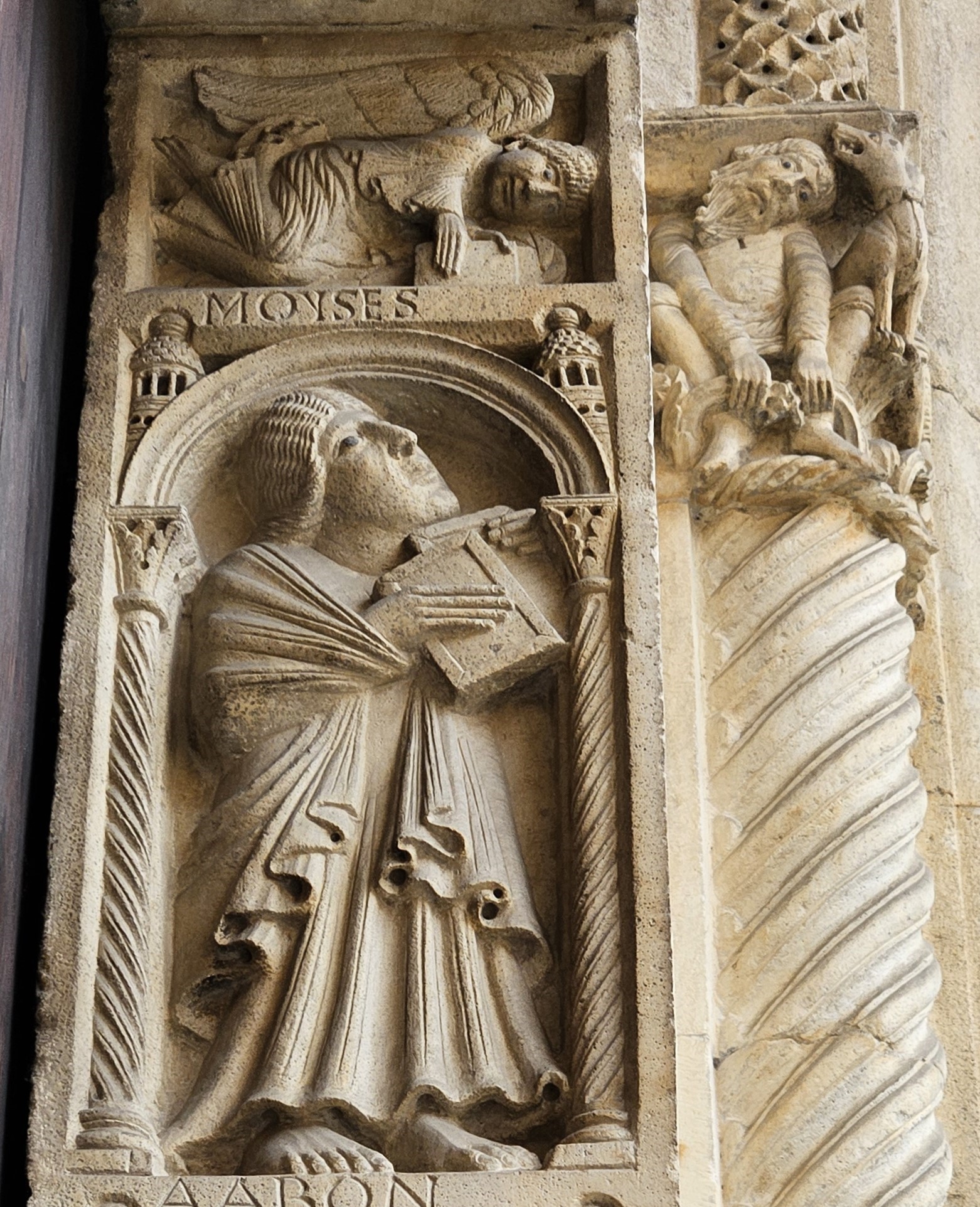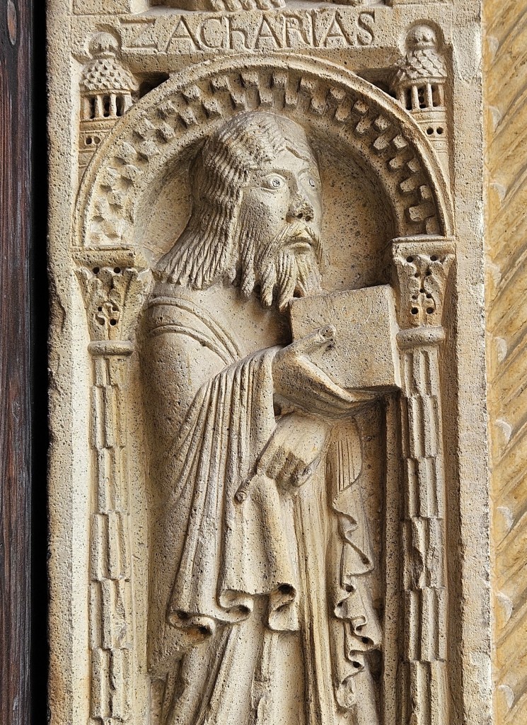 Quattordici sono dunque i “profeti” rappresentati da Wiligemo sulla faccia del Duomo, se a quelli del portale aggiungiamo i due della lapide declaratoria. E allora: ci sono tutti, i profeti della Bibbia, su questa facciata, o ne mancano all’appello? A dire il vero, qualcuno è assente, e qualcuno è… “di troppo”. Nel gruppo dei dodici Wiligelmo non ha incluso Elia ed Enoch, che come abbiamo visto tornano però nella lapide in cui si esalta Wiligelmo; ma mancano anche altri personaggi a cui la Bibbia e l’esegesi successiva attribuiscono il ruolo di profeti: non c’è Giona, che il Signore mandò a profetizzare a Ninive e che finì nella pancia della balena; non c’è Eliseo, allievo e successore del grande Elia, non ci sono poi Osea, Amos, Naum, Aggeo… e non c’è Balaam, personaggio della Bibbia un po’ a metà tra il profeta e l’indovino, e che però la vide lunga sulla nascita del Messia, tanto che la scultura romanica gli attribuisce un ruolo incredibilmente importante. E però Wiligelmo compie anche scelte inusuali: come abbiamo visto considera “profeti”, e quindi include tra i suoi dodici, i due fratelli Mosè ed Aronne, che furono per Israele, in realtà, più guide e sacerdoti che profeti in senso stretto.