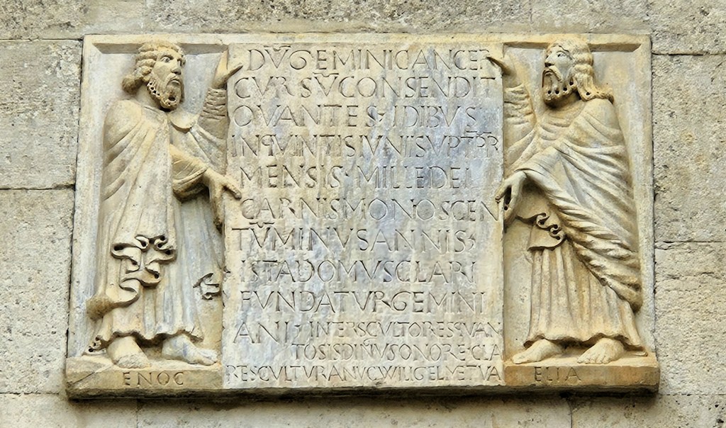 La lapide con le lodi a Wiligelmo: Enoch e Elia reggono il cartiglio