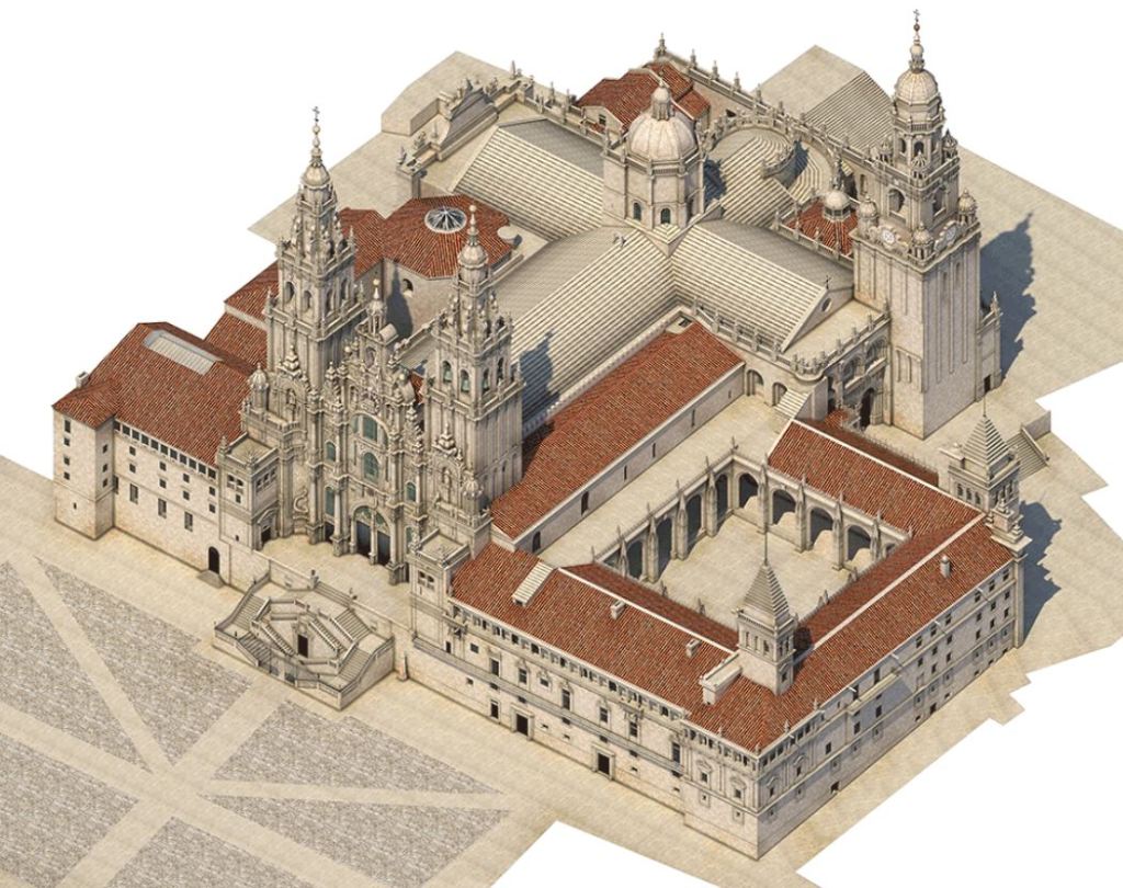Nelle stesse pagine online, il nostro bravo modellatore e designer 3D propone anche un interessante viaggio indietro nel tempo, che ci mostra la possibile evoluzione del sito, dal primitivo sacello in cui fu miracolosamente rinvenuto il corpo di san Giacomo, all’inizio del IX secolo, e fino, appunto, all’impressionante avvio dei lavori per il Santiago romanico, che sarà poi completato dall’opera mirabile di maestro Mateo, architetto e scultore.