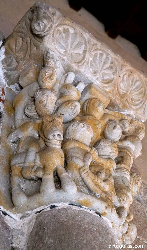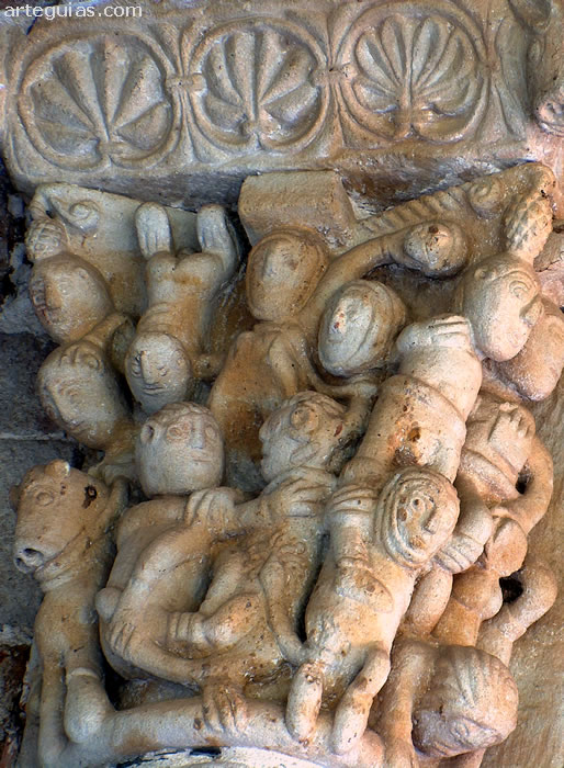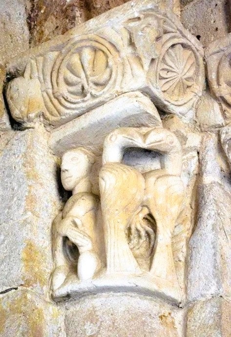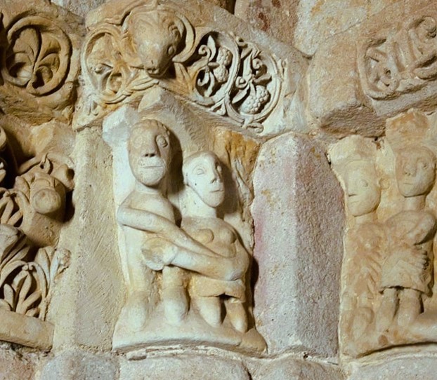 Ormai non destano più meraviglia questi capitelli dalle raffigurazioni ostentatamente erotiche, che paiono a noi così anomali e fuori contesto, ma che nell’epoca romanica erano tutt’altro che desueti anche se non proprio esposti nella navata, ma relegati all’esterno, nei cannecillos, nelle mensole o in luoghi simili.