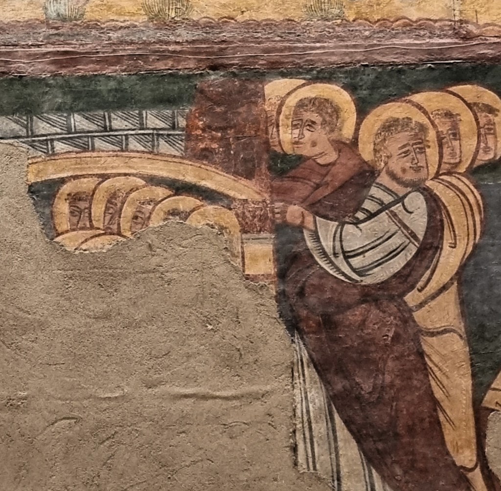 L’effetto, ripetuto, è allo stesso tempo fastidioso e innovativo, e di certo anche questi volti sovrapposti in fotocopia – ce ne sono alcuni anche in uno splendido frammento – rendono inconfondibile il ciclo di Bagüés. Che sarebbe bello rivedere, ora che per la conservazione del patrimonio tutto è cambiato, di nuovo nella luce tenue e non aggressiva della chiesa in cui era stato concepito, quasi mille anni fa.