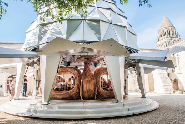 L’abbazia di Saintes, del cui portale trino raccontiamo in questo articolo, è stata edificata a partire dall’XI secolo per una comunità monastica femminile. La facciata attuale risale al XII secolo, come pure la strutturazione finale dell’edificio, che fa parte della famiglia di chiese coperte con cupole, diffusa in questa regione. Protagonista di una lunga storia, nei tempi moderni trasformata in caserma e deposito, l’abbazia oggi è il cuore di una serie di eventi musicali (e non solo) organizzati e coordinati da un ente che proprio da lei prende il nome: si chiama infatti Abbaye-aux-Dames. Before Chartres non ha competenze in materia di musica e di concerti, ma sente di poter fare i suoi complimenti, invece, alla parte comunicativa di queste rassegne: i festival sono promossi con vivacità e gusto, e con una ricca documentazione fotografica – e dalla pagina Facebook Abbaye aux Dames riproponiamo qui alcune immagini -. Ci pare che si stia svolgendo a Saintes un’impresa notevole, e che quello messo in campo sia la modalità più efficace di conservare un monumento medievale al centro dell’attenzione e della frequentazione: i riflettori dei festival e le luci dei concerti sono certamente un modo più nobile per illuminare l’abbazia rispetto a quanto avviene in altre città della stessa Francia, o rispetto alla pura trasformazione degli spazi del monastero in luoghi di ricettività elegante ma del tutto priva di risvolti culturali.