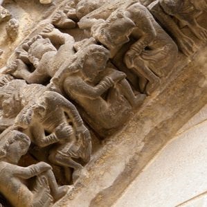 Ci sono altri portali simili in Francia, ma quello che mi ricordano di più e quello spagnolo di Uncastillo, in Aragona, anch’esso con archivolti multipli e intensamente figurati.
