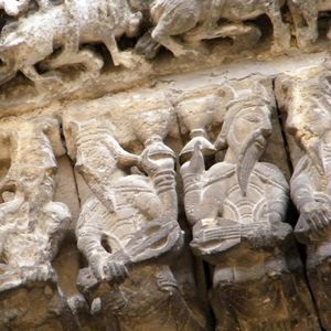 A destra e a sinistra rispetto a questo maestoso e complesso portale maggiore – da notare anche i capitelli del tipo della selva abitata, accostabili a quelli di Agramunt, in Spagna, e di Cavagnolo Po e Montiglio in Piemonte – i due falsi portali laterali presentano anch’essi archivolti fittamente scolpiti, e degni di essere osservati fino a decifrarne il messaggio.