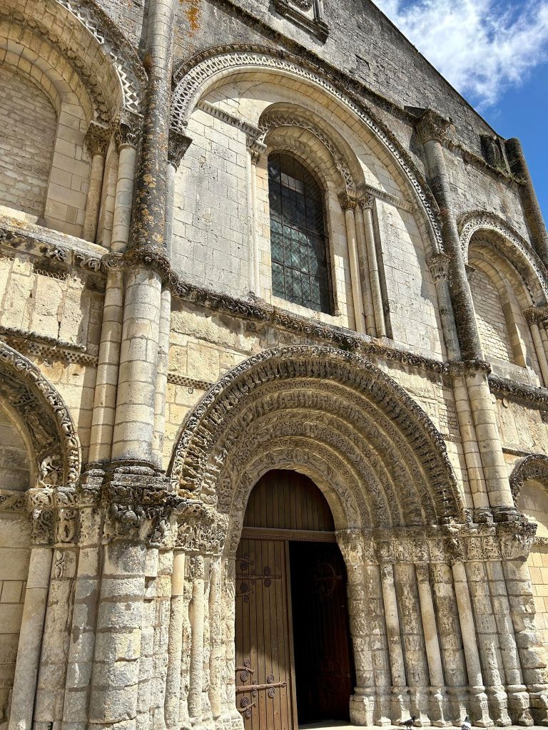 Sono così vivaci e belle le attività culturali – concerti, ma non solo quelli – di cui l’Abbaye-aux-Dames di Saintes è diventato il fulcro, che quasi offuscano il triplice portale romanico, un tempo attrattiva principale della città. Un po’ ci mette del suo, il portale, con le sue pietre un tantino consunte e in certe parti scure, e soprattutto con l’affastellarsi delle figure, così tante e fitte da risultare leggibili solo da chi abbia voglia di dedicarcisi con un sovrappiù di impegno.