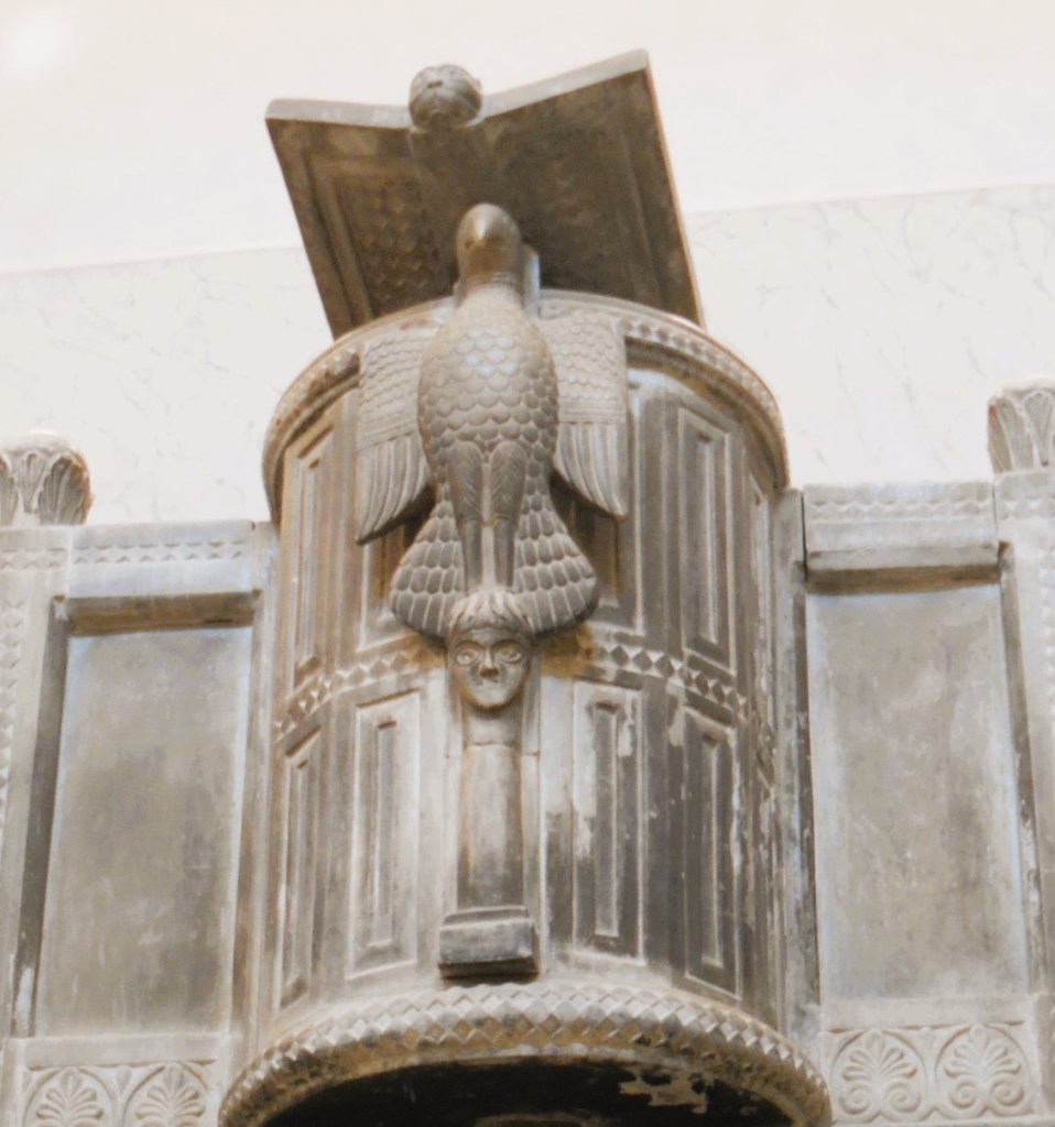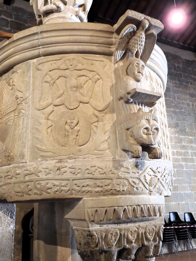 * In un precedente articolo Before Chartres ha già spiegato che forse nel pulpito di Gropina il toro di Luca c’è. E però, comunque è nascosto, comunque è eccentrico rispetto al “trimorfo”: anche qui gli altri simboli degli evangelisti sembrano fare parte per loro stessi, ed isolarlo.