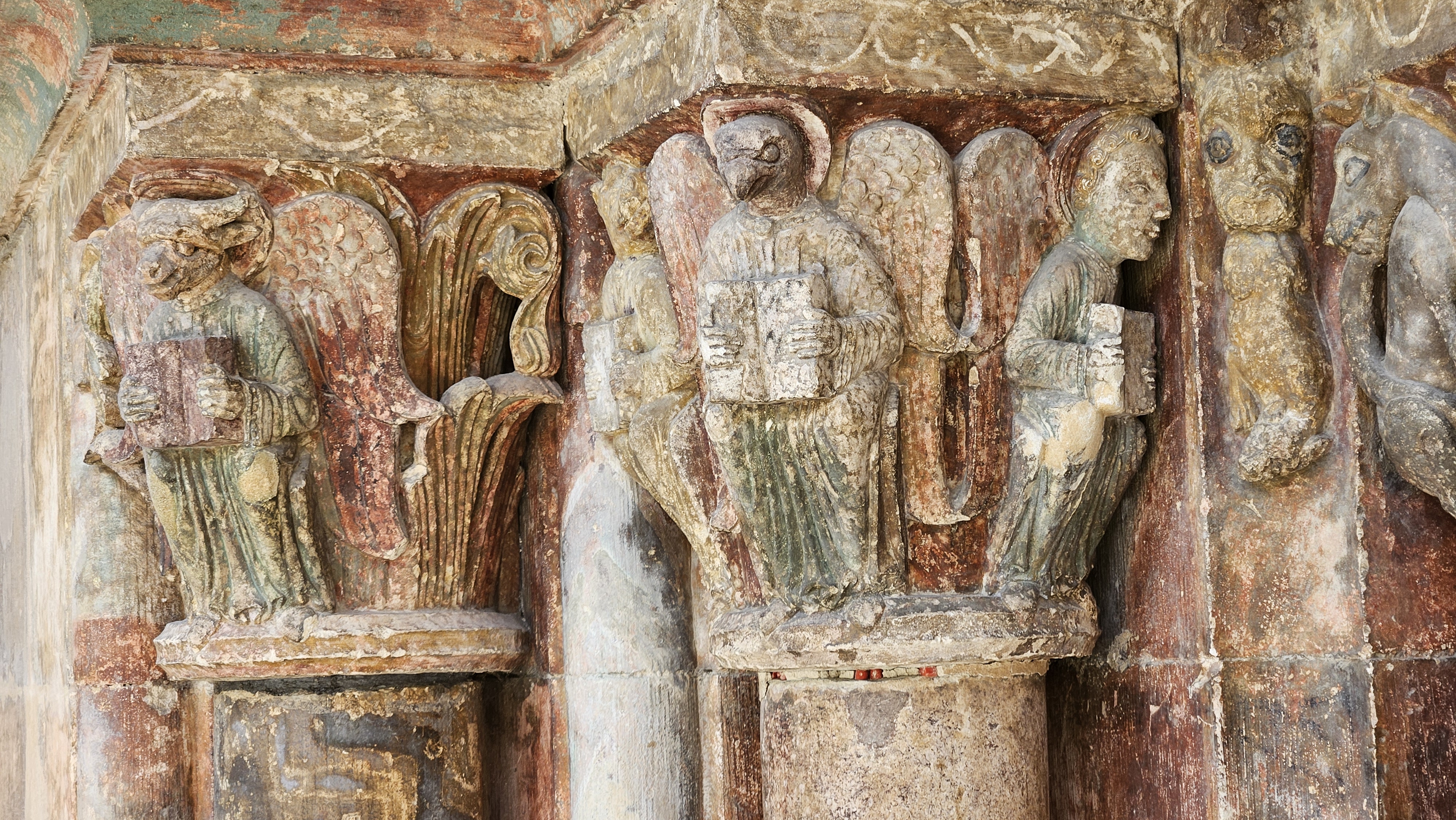 I capitelli di Saint-Ursanne: il simbolo di Luca sta da solo, gli altri tre insieme