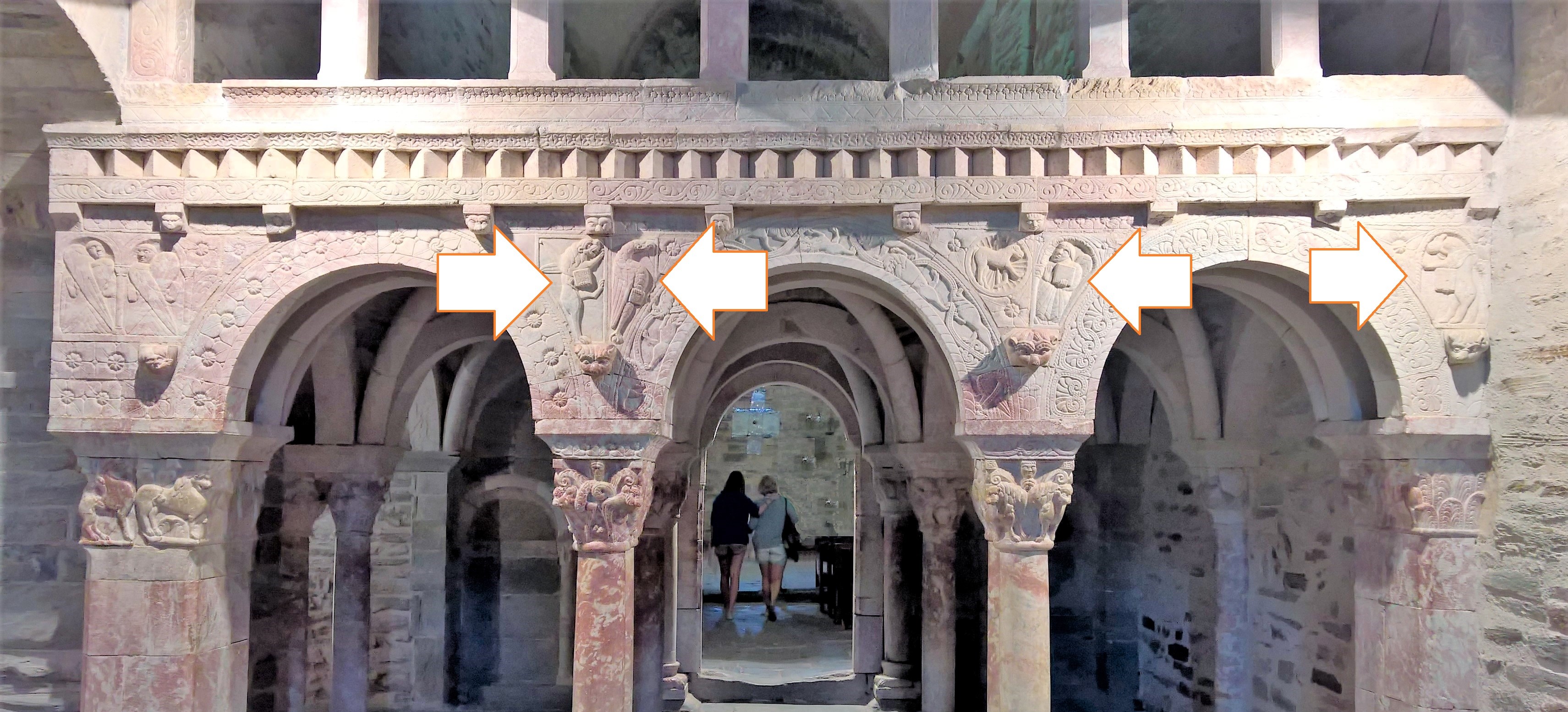 Così nell’amato esempio di Serrabone non è poi così marginale il toro di Luca, esattamente giustapposto all’angelo di Matteo sulle reni di un’arcata. Se è vero che gli altri due simboli sono strettamente affiancati, angelo e toro sono entrambi più lontani, per cui l’esempio non convince.