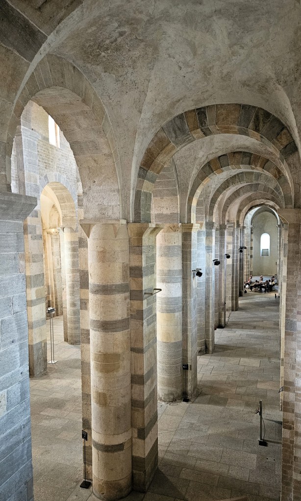 C’è molta cura, a Payerne, anche intorno alla conservazione della chiesa, restituita al suo splendore dal restauro concluso nel 2020. E’ c’è molta cura nella proposta di fruizione fatta ai visitatori: in primo luogo perché lo spazio, reso museale, sottratto da molto tempo alle celebrazioni religiose, consente che l’interno sia scevro da arredi e si mostri nella sua più lineare purezza; tutto questo ha inoltre permesso ai gestori del sito monastico – oltre alla chiesa, restano a Payerne alcuni degli edifici abbaziali – di organizzare al meglio la proposta fatta ai visitatori. Nella pagina dedicata alla chiesa dal sito MiniMe Explorer, attento soprattutto al rapporto tra i bambini e i luoghi storici e culturali, sono ben sintetizzate le particolari modalità in cui è possibile godere, prenotando per tempo e secondo gli orari di visita, di una originale e piacevole esperienza immersiva. A chi sceglie di fare questo percorso sono proposte sofisticate audioguide in lingua (ma l’italiano manca!), plastici, ricostruzioni multimediali, video che appaiono sui muri e sui pavimenti delle navatelle, e perfino un filmato sulla vita dei monaci proiettato sul soffitto dell’antico dormitorio, da vedere sdraiati su panche legno, dure come potevano essere, nei secoli d’oro della comunità, i letti dei giovani novizi di Payerne.