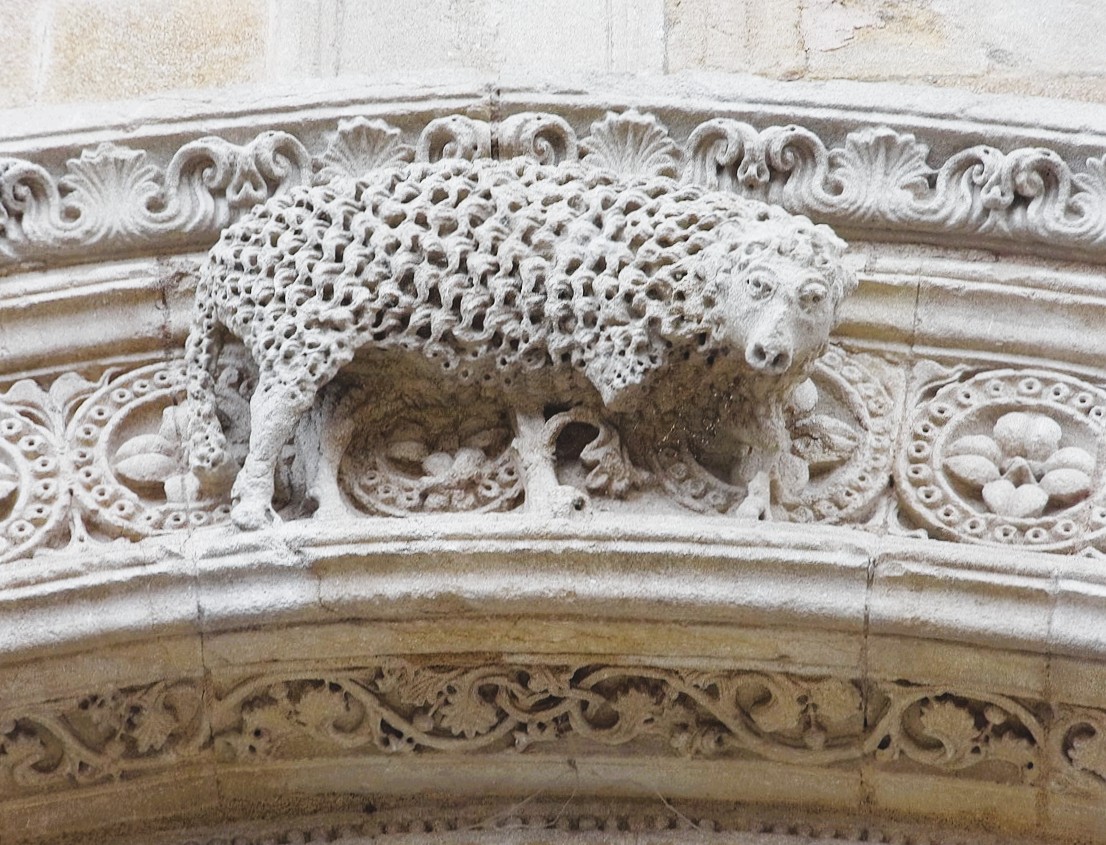 E tutto ci porta alla figura che sta al culmine del portale maggiore, l’Agnello di Dio, sacrificio di salvezza: è singolare che sia l’unica figura su cui non si sono accaniti i martelli di chi volle cancellare dal portale di Charlieu ogni immagine che potesse ricordare e celebrare il Cristo, la sua incarnazione, il nuovo patto tra Dio e gli uomini siglato sull’altare dei cristiani.