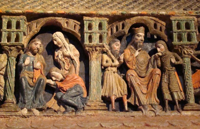 La scena centrale dell’adorazione dei Magi, su uno dei lati corti (foto: Outisnn, elab.)