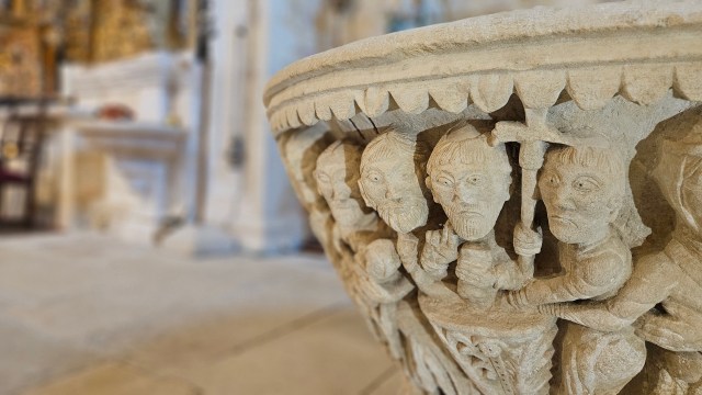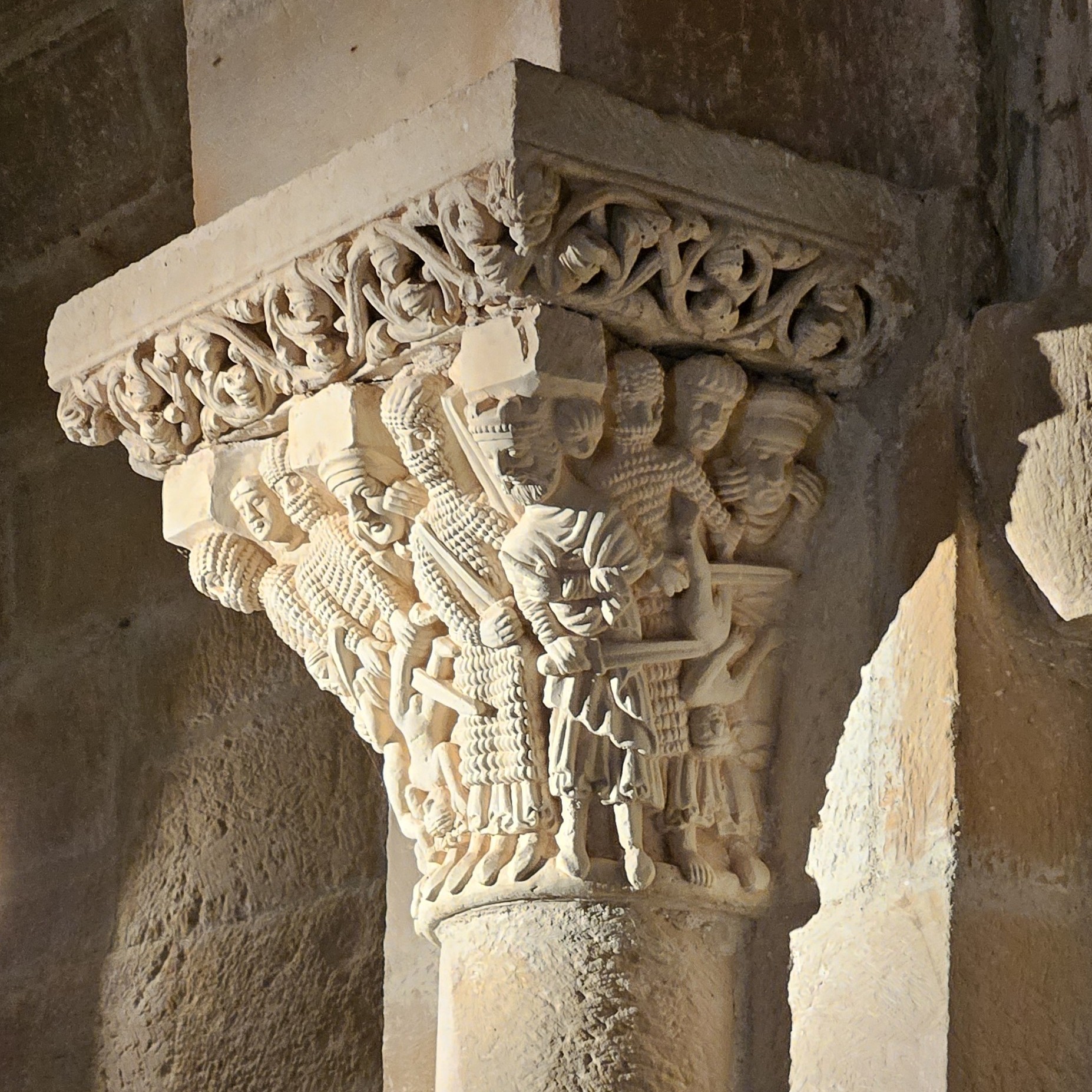 Due chiese in apparenza prive di interesse, quella di Colmenares e quella di Calahorra, vanno però visitate perché custodiscono le più belle pile battesimali di tutta la Castiglia. In cerca di capitelli di grandissimo valore andremo a Rebolledo de la Torre, dove incontreremo l’avaro e la sua morte, e dove tutto il portico della chiesa si propone come interessantissimo esempio delle tante chiese romaniche castigliane affiancate da un porticato; saliremo poi nella chiesa tarda di Santa Cecilia ad Aguilar de Campóo per vedere il bellissimo pezzo dedicato ad Erode e alla strage degli Innocenti; a San Juan de Ortega potremo vedere il bellissimo capitello della Natività, che si illumina del sorriso di Maria/Monna Lisa; e infine nella chiesa di Retortillo potremo ammirare i due capitelli della guerra e della pace; ma dovremo avere molta fortuna, perché la chiesa è quasi sempre chiusa.