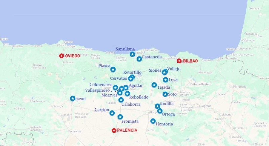 Fatte queste due premesse, Before Chartres tenta in questo articolo, dopo aver battuto l’intera regione, di delimitare un’area coerente, che sia possibile visitare con soddisfazione in una settimana. Abbiamo scelto come campo base la città di Aguilar de Campóo, per muoverci poi tutto all’intorno; e teniamo come confine a nord l’Atlantico – inserendo quindi nell’itinerario la piccola regione costiera della Cantabria -, a sud la linea ideale che passa per Palencia – lasciando Soria e Silos ad un viaggio che abbia per centro Madrid -, e ad est i territori di Navarra e Aragona, che possono essere visitati con un altro itinerario; ad ovest, infine ci fermeremo a León, lasciando quindi fuori da questo viaggio Oviedo e le Asturie, con il loro patrimonio di monumenti in gran parte preromanici.