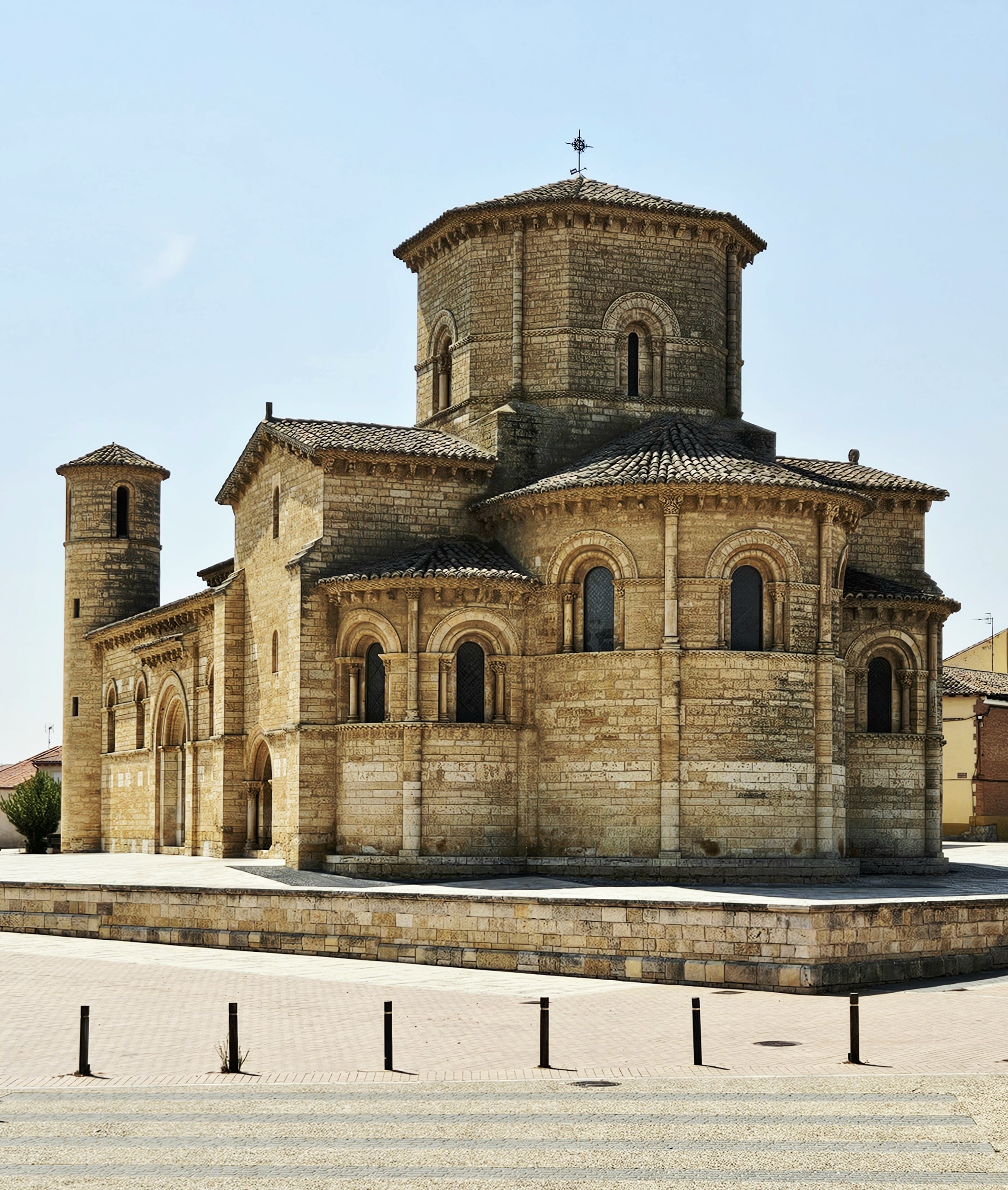 In un territorio fatto in gran parte da piane agricole smisurate, o da aree increspate di rilievi anche questi radamente popolati, tre sole, tra le chiese che visiteremo, possono dirsi urbane: le citiamo per prime perché i nuclei  che le ospitano, posti ai limiti estremi del territorio che intendiamo mappare, aiutano ulteriormente a delimitarlo. All’estremo occidente andremo a León, antica capitale: qui la collegiata di Sant’Isidoro si propone con la sua possanza, con i suoi due portali scolpiti e con gli splendidi affreschi del Panteón de los Reyes. La seconda cittadina sta a nord, a pochi passi dell’Atlantico: è Santillana del Mar, e propone la propria collegiata, che è quasi un palazzo, e il chiostro dalle colonne pesanti. A sud ci fermeremo una volta giunti nella piccola cittadina di Frómista: qui la chiesa, dedicata a san Martino, si propone come realizzazione perfetta – anche se frutto di un non indifferente lavoro di ripristino – dell’architettura religiosa romanica, ulteriormente arricchita da una serie di pregevolissimi capitelli.