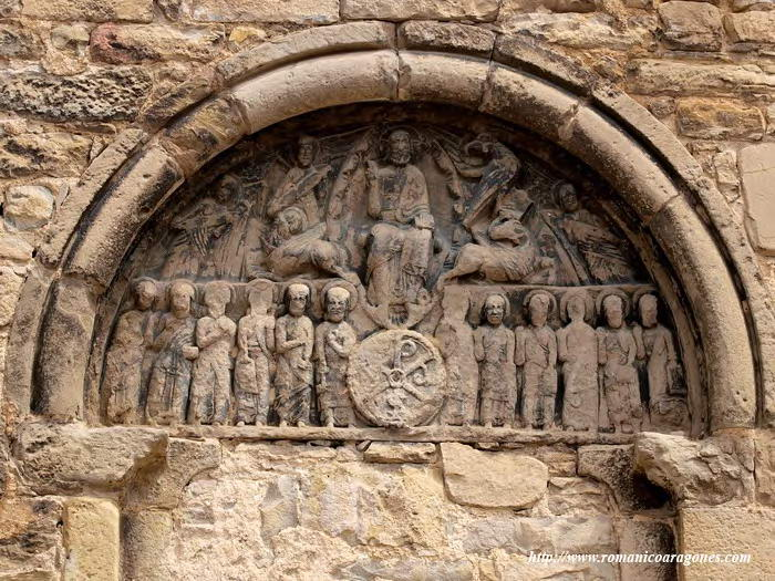 Per vedere la più imponente rappresentazione del Cristo in Gloria circondato dal Tetramorfo occorre andare a Moissac; la stessa scena, cruciale in tutta l’arte romanica, torna cento e cento volte nei portali e nelle miniature, nei dipinti absidali e sulle copertine degli evangeliari; ma non per questo sorprende meno incontrarla a Botaya, modesto villaggio sperduto d’Aragona, scolpita in una lunetta così piccola che è quasi irrispettoso proporre un paragone.