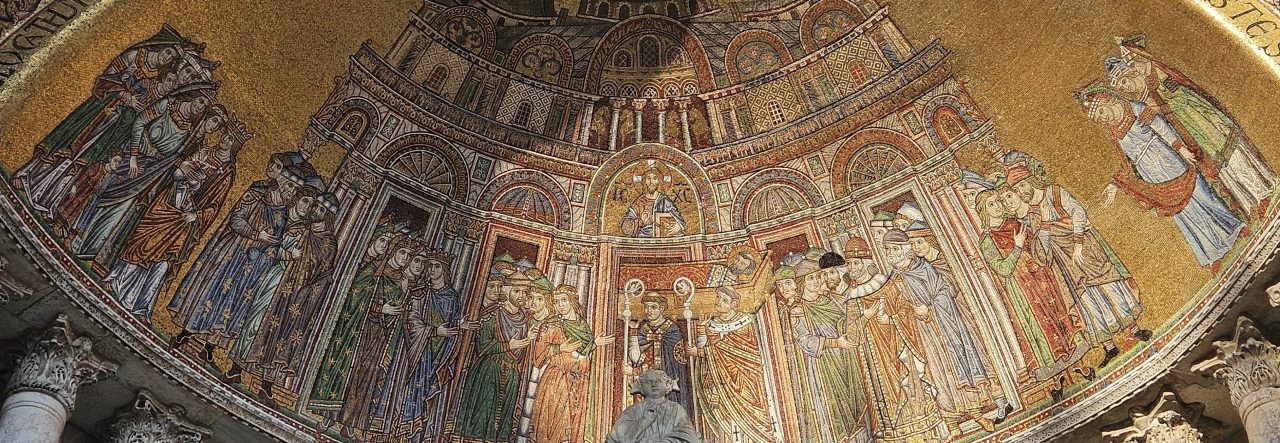 Ci siamo già chiesti, in un altro articolo, di come, e in che misura, la chiesa di San Marco a Venezia possa dirsi romanica, e in quella occasione abbiamo ricordato il mosaico in cui, come in un autoritratto, la basilica stessa ci dice com’era alla fine del XII secolo. Proviamo, in queste pagine ulteriori, a fissare una cronologia della costruzione della chiesa, così che sia possibile comprendere ciò che vediamo oggi, e soprattutto datare i diversi elementi alle fasi edificatorie che si sono via via succedute.
