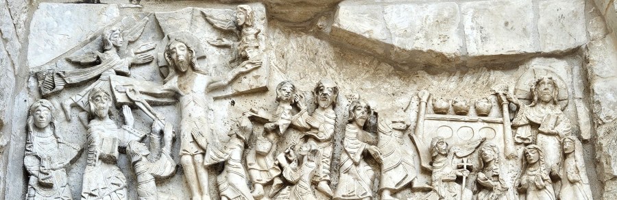 A sorprendere maggiormente, dentro la complessa lastra "della Passione" di Monte Sant'Angelo, è quel Cristo che, morto eppure in piedi, si lascia accompagnare da Giuseppe d'Arimatea verso la propria sepoltura. La figura di Gesù, pur danneggiata, balla con quella del pietoso discepolo un "passo a due" allo stesso tempo inatteso e struggente; e non è …
